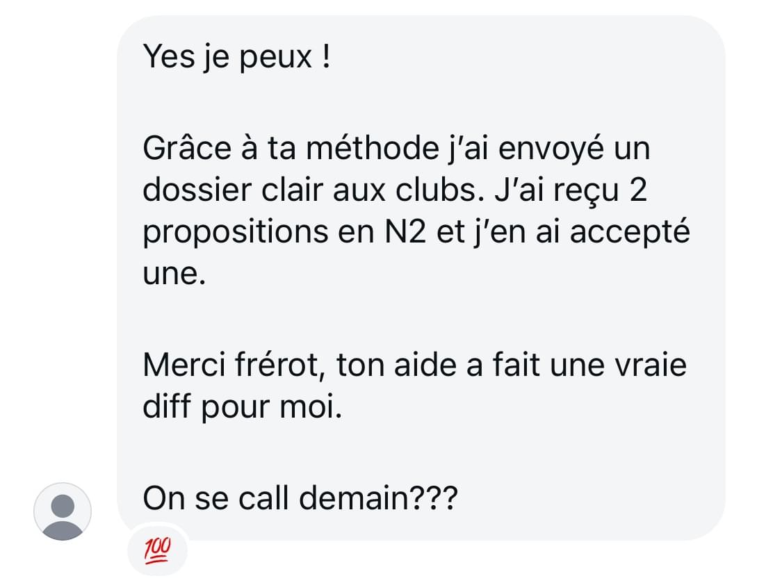 Non, et aucune formation sérieuse ne peut le garantir. Le recrutement dépend de ton niveau, de ton sérieux, de ton timing et des besoins des équipes. En revanche, cette formation te permet d’envoyer un dossier professionnel, clair et crédible, bien supérieur à la grande majorité des candidatures que les coachs reçoivent. Tu maximises tes chances parce que tu montres le meilleur de toi, avec une vraie stratégie.